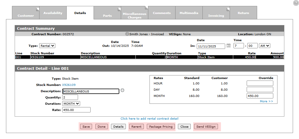 On a Rental Contract Details tab, in the IR integration, only the Details and Close buttons remain.