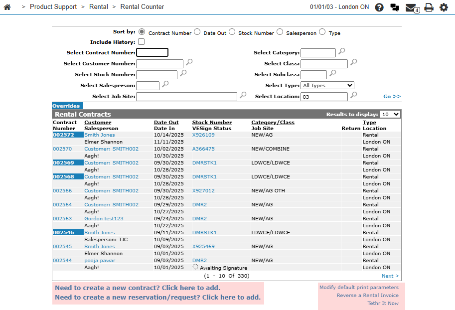 The ‘Recent Equipment Rented’ will show for Integrated Rental contracts which have generated an Invoice.