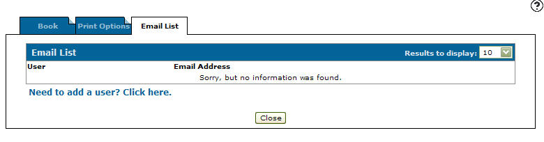 You can use the Email List tab to set up an email distribution list, indicating which users will receive the financial book by email.