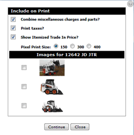 | Show Itemized Trade In Price> | Prints an itemized list of pricing related to any trade ins on this quote. |