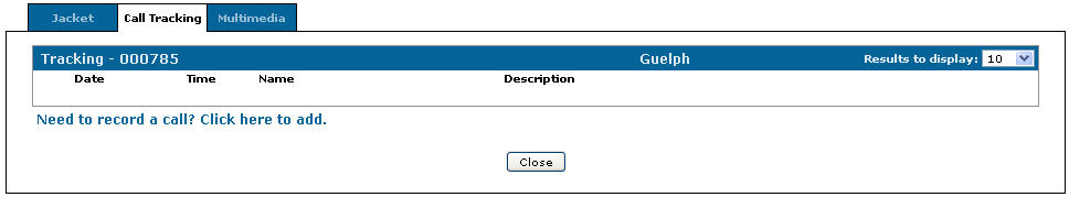 Click Close to close the Call Tracking tab and return to the Jacket screen.