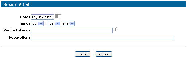 | Close | Closes the Record A Call screen without saving and returns to the Call Tracking tab. |