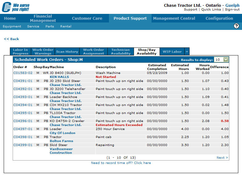 To open the Supervisor Labor in Progress tab, from anywhere within IntelliDealer navigate to Product Support > Service > Supervisor .