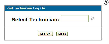 Use the 2nd Technician Logged on screen to log onto a work order as a second technician to assist another technician on a work order.