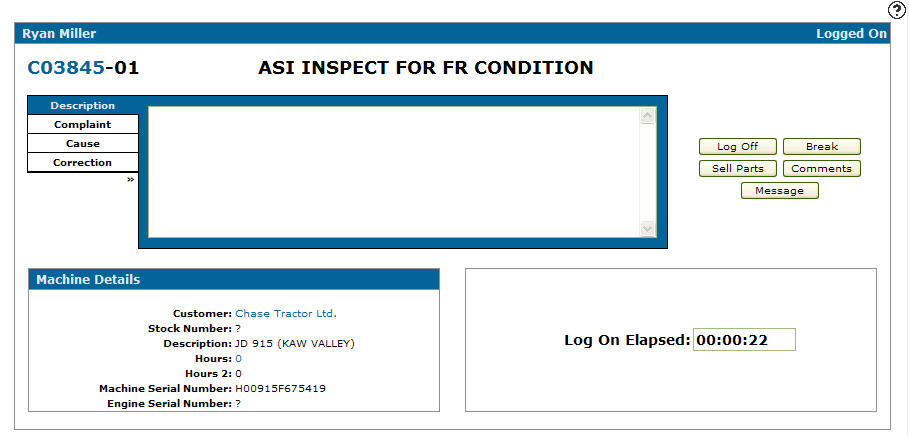Use these buttons to complete your work on the 2nd Technician Logged on screen: