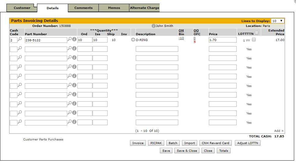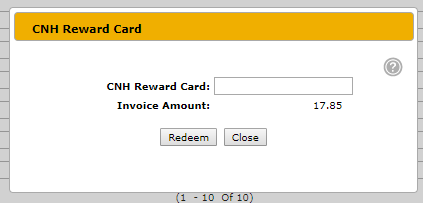 - The amount to be charged to the CNH Reward card will be the total of the parts invoice. You will want to make sure all of the parts are on the invoice prior to pressing the button.