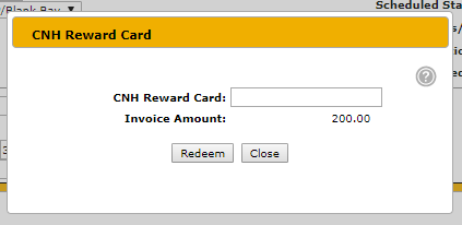Note: The interface attempts to post the entire invoice total at the time you press "REDEEM" button. If the reward card doesn't have enough available credit, it will only post the amount the reward card has available. For example, if your invoice is for $125 and it is a 50 reward card, then the CNH will bring the reward card to $0 and we will create a line on the invoice for $50, and you will need to find another payment type the customer can use to get the remaining $75.