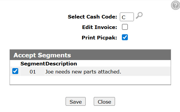 Select the checkbox for each Segment that you wish to accept.