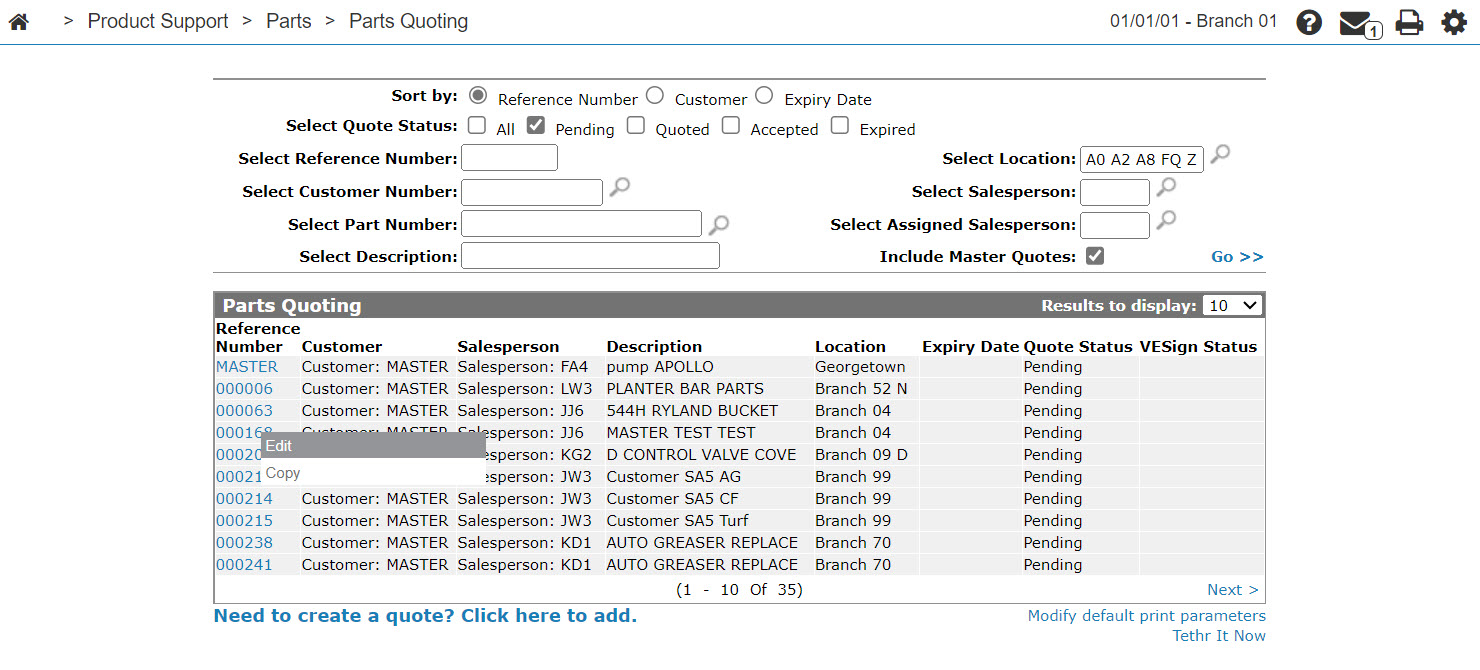 Navigate to Product Support > Parts > Parts Quoting.