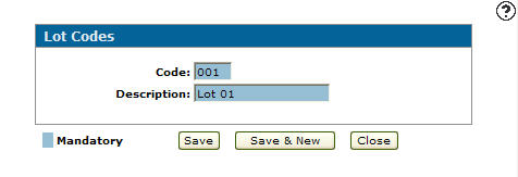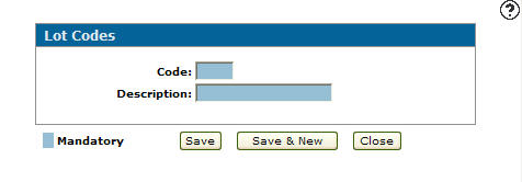 On the Lot Codes screen, enter a Lot Code used to represent the code within the system.