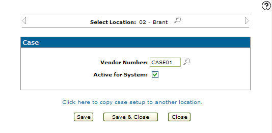 Once you have fill out all the desired fields click on the Save button to set up the case parameters for the selected location.