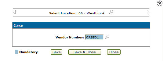 Once the Location is selected the Case screen will appear.Case screen