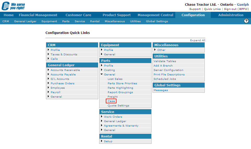 From any IntelliDealer screen, click on the Configuration tab.