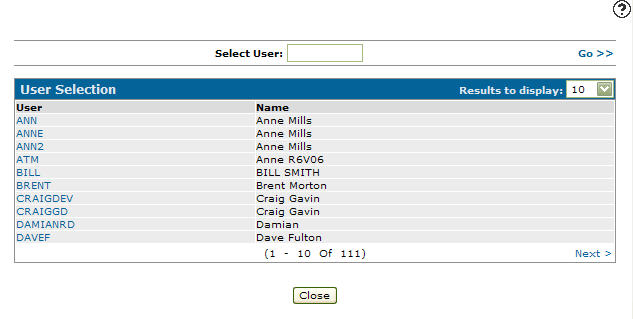 icon, the User Selection screen will appear.User Selection screen