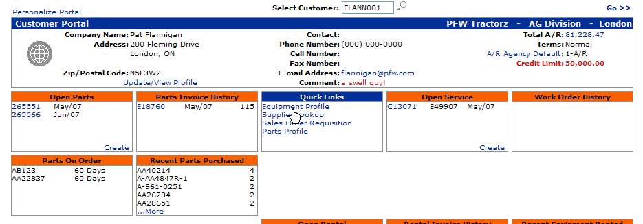 If someone wishes to have the customers list of owned machines accessible in the Customer Portal, it is available through the 'Quick Links' option.