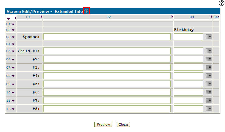 On the Screen Edit/Preview screen, click on the Information