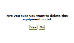On the Equipment Codes screen, click the Delete button.