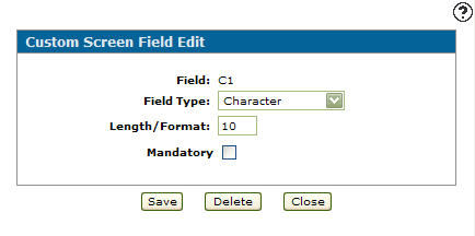 Custom Screen Field Edit screen