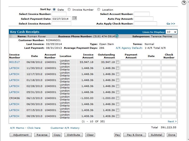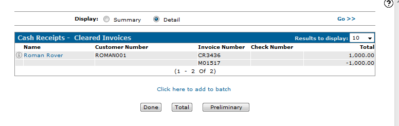 Hit pay and done to come out of the cash receipts screen. The details screen should show you the accounting transactions. In our case we used the credit of $1000 and applied it against invoice M01517.