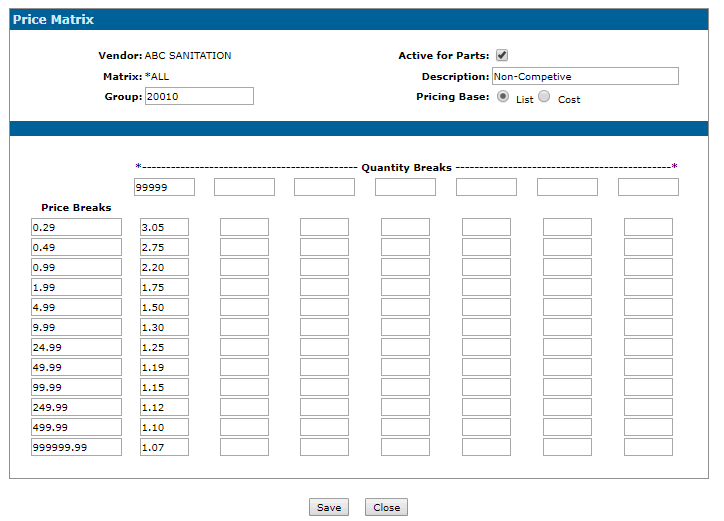 Depending on the Price Base found on the Matrix screen, Preview or Save will take either the List or Cost price and do a look-up in the Price Matrix