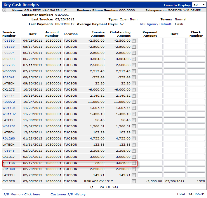 Description: Invoice Amount and Outstanding Amount in Cash Receipts not matching