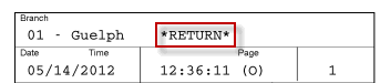 Note: On equipment reversals that print all of the details, the invoice image will show the date and time of the invoice with *RETURN* beside the branch location.