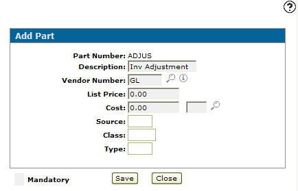 NOTE: This does not work when you adjust GL vendor part numbers. Since GL vendor part numbers are not acutal part numbers it uses the same logic as when you transfer GL vendor part numbers. An entry will be made to sale and COS account along with the inventory and adjustment account.
