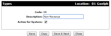 A type will be used for Labor Pricing purposes. Having this type assigned to each non-revenue technician’s segment will ensure that the proper accounts and premium code are used for all of their labor entries. This is set up under Configuration > Service > Work Orders > Types.