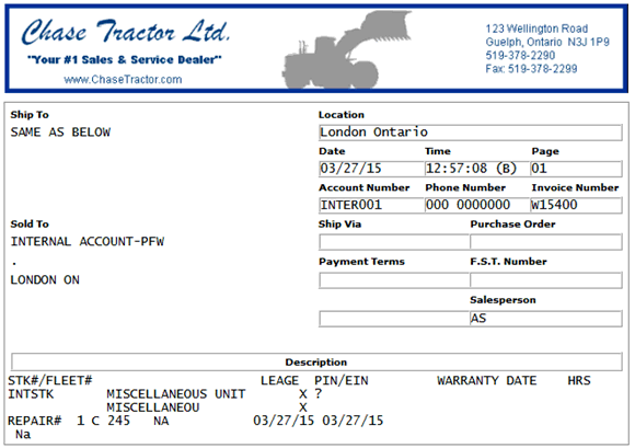 Non revenue labor at cost in IntelliDealer