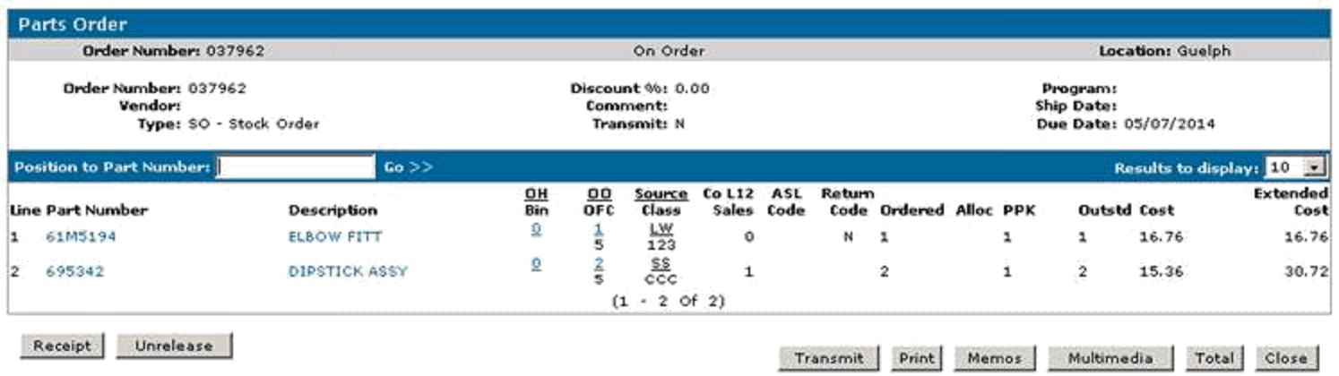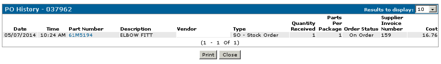 Part Receipted but Still Showing on the Purchase Order