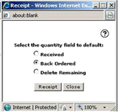 User clicks on receipt, selects BACK ORDERED then clicks on 'Receipt'