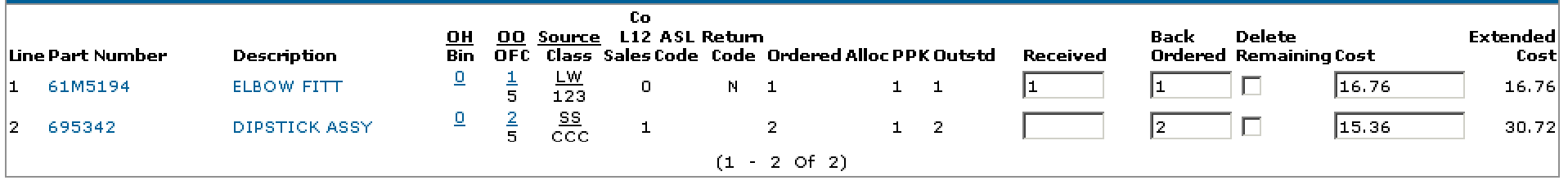 When this is down the system actually copies the part # and quantity, moves 1 to history and leaves the other 1 outstanding