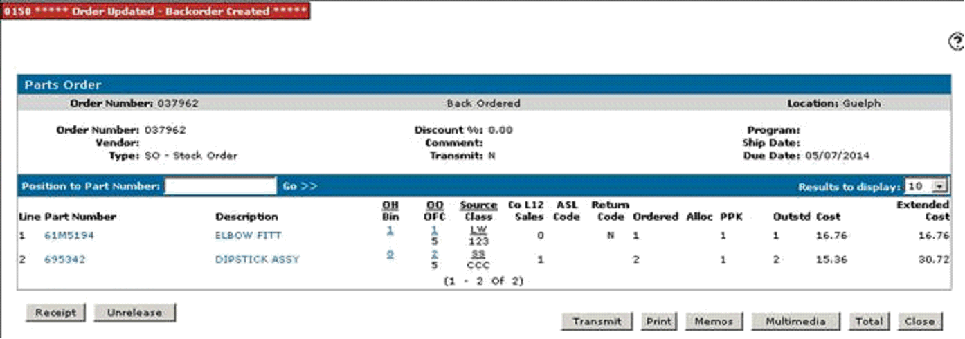 - Make sure if you have more then the 1 part on the Purchase Order that you will need to uncheck the delete remaining on the part that is still outstanding and put the quantity into back ordered