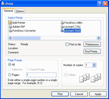 The Print dialog will appear.Print Dialog