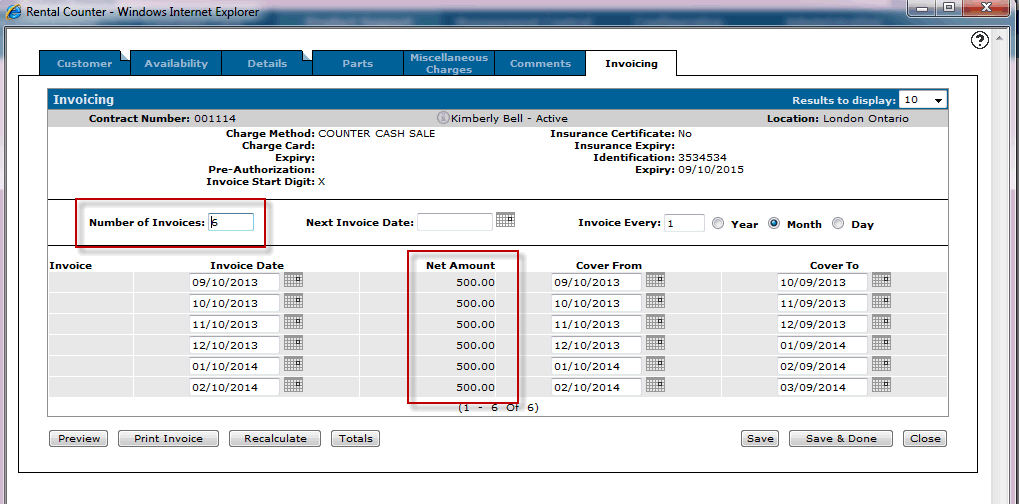 In order for the customer to be invoiced 500 monthly the Quantity must be changed or the total rate must be changed. Use the Preview button to ensure the customer will be invoiced the correct amount.