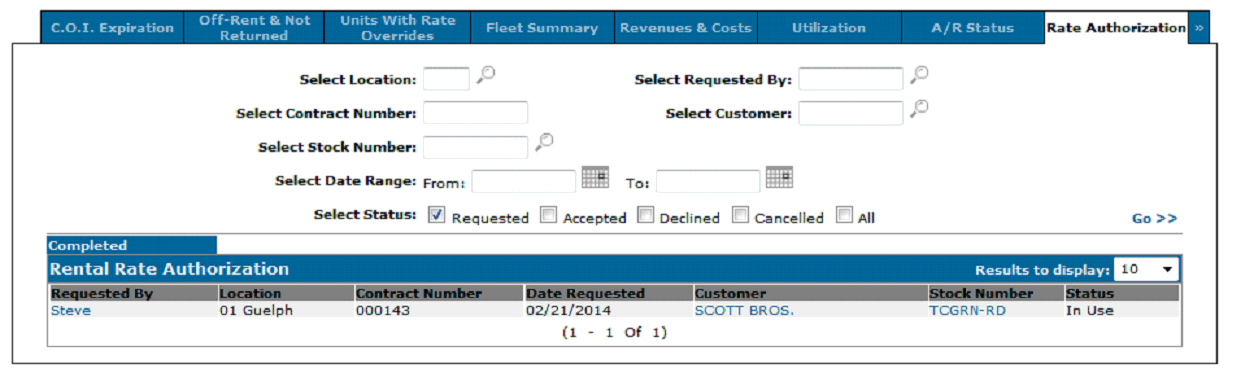 - Clicking Cancel on the Request removes the request from the Rental Rate Authorization screen but it is logged