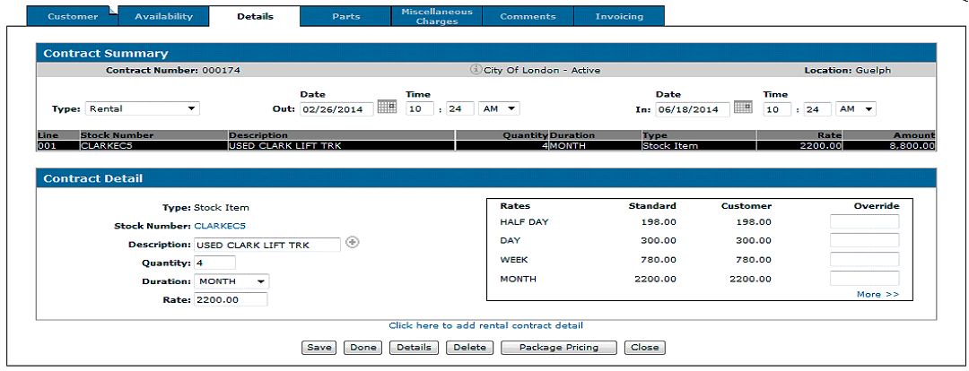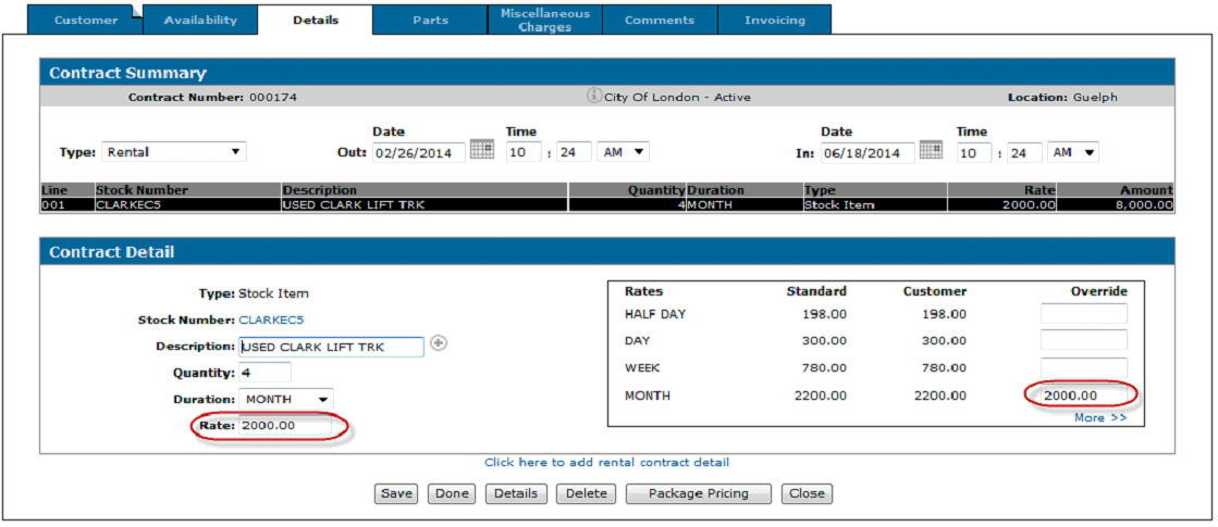 - If the user clicks on the Cancel button he or she will be returned to the Details tab of the contract but the rate will revert back to the previous rate. In this example, $2,200.