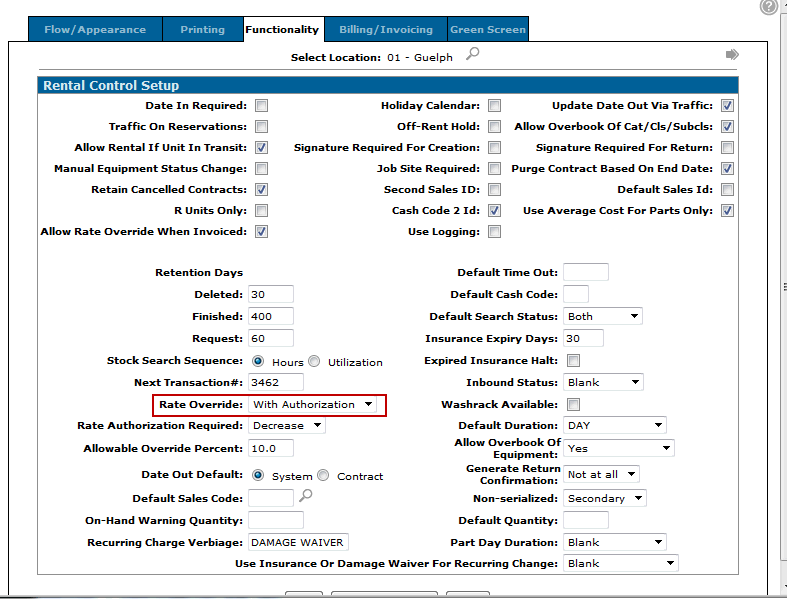 1. In IntelliDealer go to Configuration Rental Setup Rental Control Setup Functionality