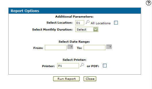 Select the All Locations checkbox to run the selected rental report for all branch locations.Report Options screen
