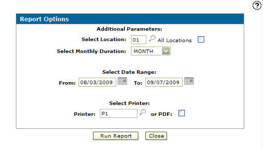 On the Report Options screen, enter a branch location in the Select Location field to run the selected rental report for the branch location selected.