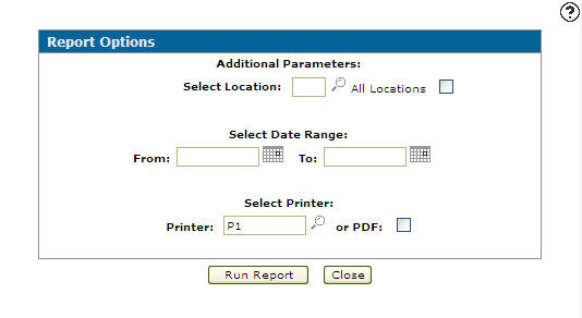 On the Report Options screen, for an individual location enter a location in the Select Location field for all locations selected the All Locations checkbox.