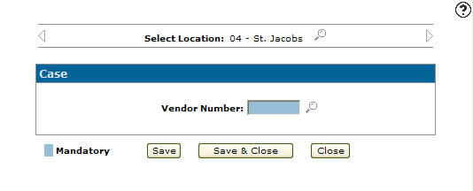 On the Case screen, enter a Vendor Number. The vendor number entered indicates the parts vendor used on machine down orders, weekly stock orders to Case, or for CCNWEB parts purchase orders transmitted to CNH.