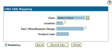 Click the Save & New button to save the new CNH CRA Product Code Mapping.