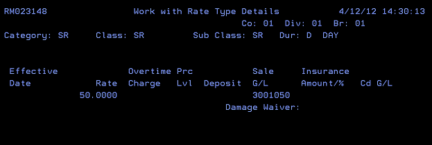 Here is the rate type details screen again for SR/SR/SR in 01/01/01 showing the rate of 50.0000.