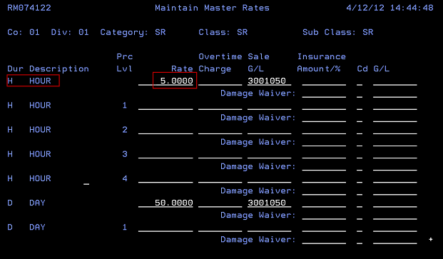 In this example the master rates screen for SR/SR/SR shows a rate for the hour duration: