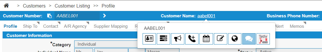 There is a hover-over menu that can be opened by holding your cursor over the Customer Name. It allows you to open that customer's profile to add a call, add a note, and many other features.