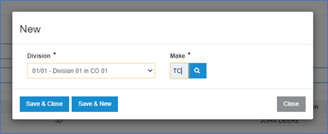 Click Save & Close to return to the configuration screen, or Save & New to configure an additional make.