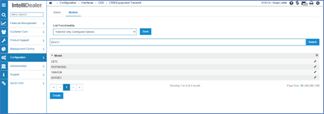 The model configuration screen can be accessed on the second tab. This screen functions similar to the make configuration screen, but the models are considered system-wide and not specific to a particular division.