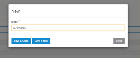 4. When all mandatory fields have been filled in, click the Save & Close button to return to the configuration screen, or Save & New to configure an additional model.