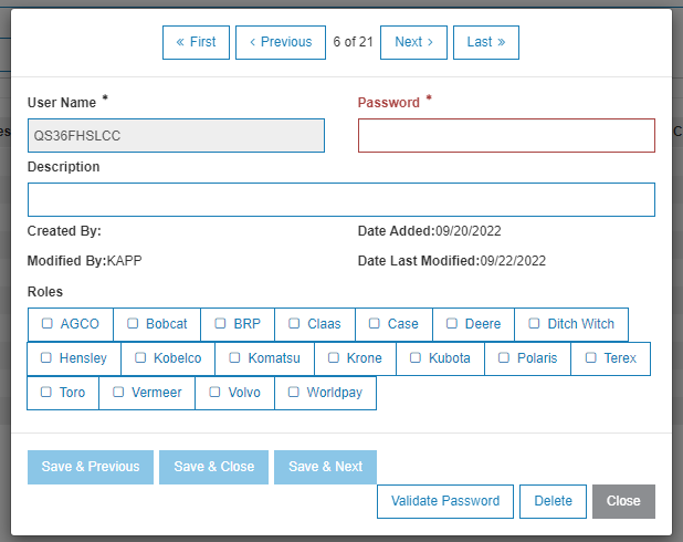 Validate Password—opens a dialogue into which you can enter a password associated with the current third-party user ID. It does not update the password, merely validates whether it is a valid password for that ID.